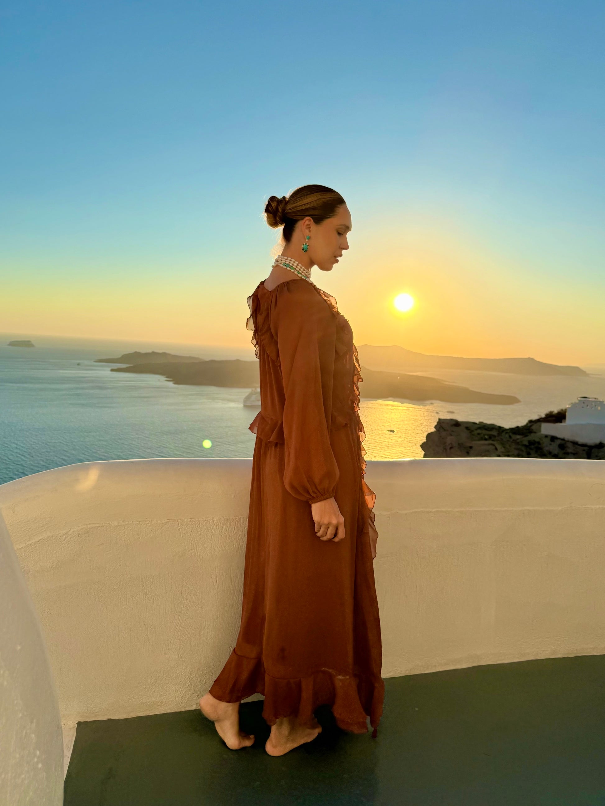 Vestido Boho em chiffon com babados e fluidez